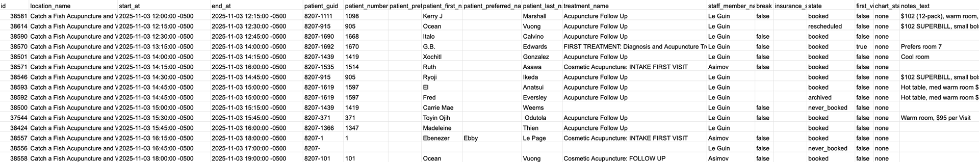 Each morning, our office assistant copied patient data from Jane App into a Google Sheet by hand—every name, room, and note. The task consumed 15–20 minutes, invited typos, and sometimes got skipped entirely when mornings got hectic. Without a finished tracker, staff scrambled to assign rooms before the first patient arrived.